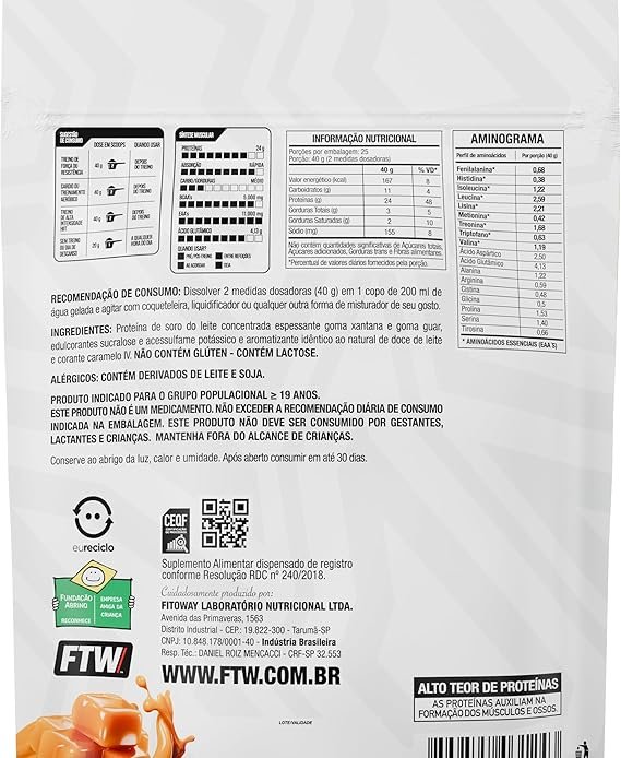 Em até 2x de R$ 21,00 sem juros FTW 100% Whey Protein com Proteína Concentrada WPC, para Atletas com Alto Valor Biológico, Suplemento Pós-Treino Sem Glúten – Refil 1kg (Sabor Doce de Leite Argentino)