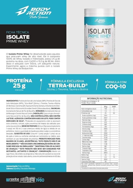 Em até 1x de R$ 37,50 sem juros Isolate Prime Whey 900g Sabor Chocolate Bodyaction