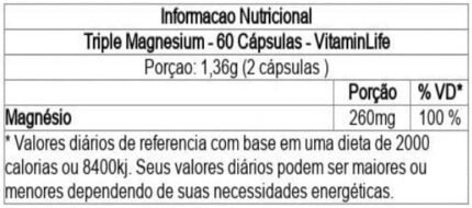 Ingredientes Taurato de Magnésio, Bisglicinato de Magnésio, Malato de Magnésio, Gelatina, Celulose Microcristalina (Estabilizante) e Água Purifi cada. O
