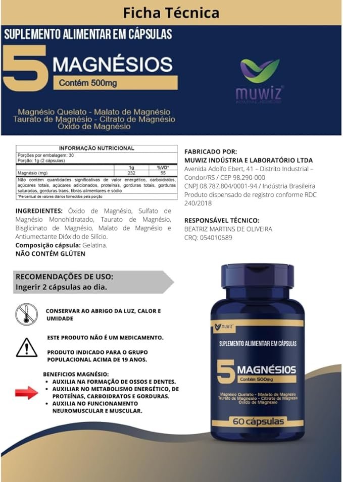 5 Magnesio Quelato Malato Taurato 60 Capsulas 3 Unidades